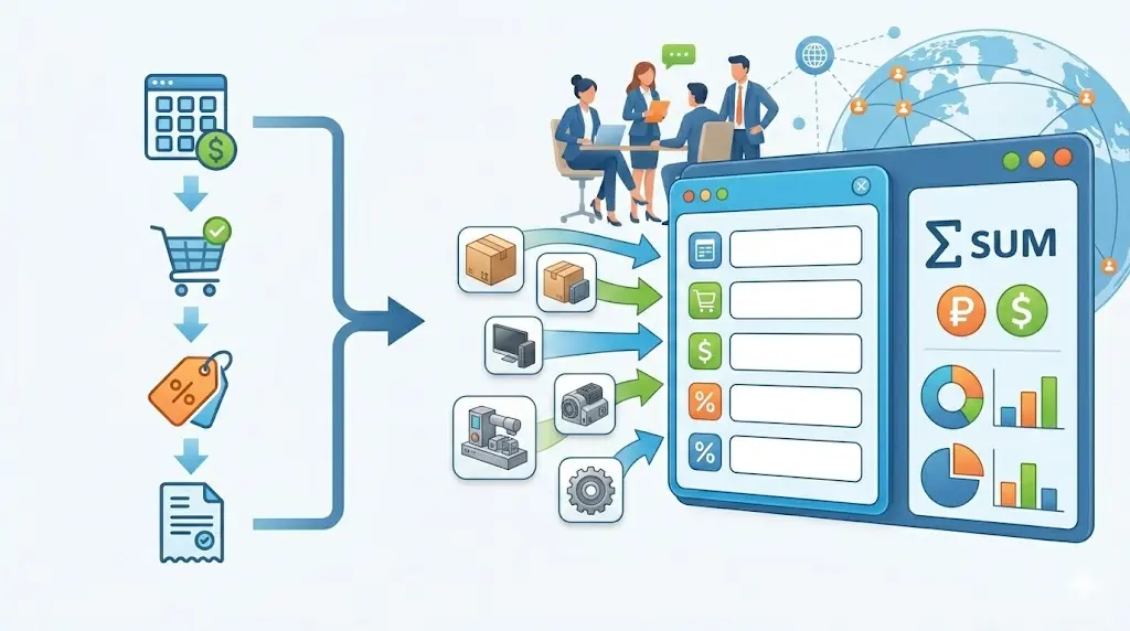 - Уменьшено количество ручных операций и риск ошибок при пересчёте валют и стоимости.