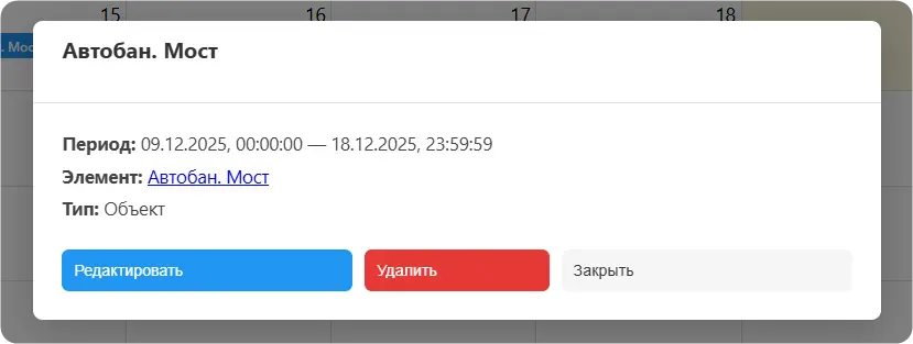 - Редактирование и удаление: Кликните событие — измените даты или удалите в 2 клика.